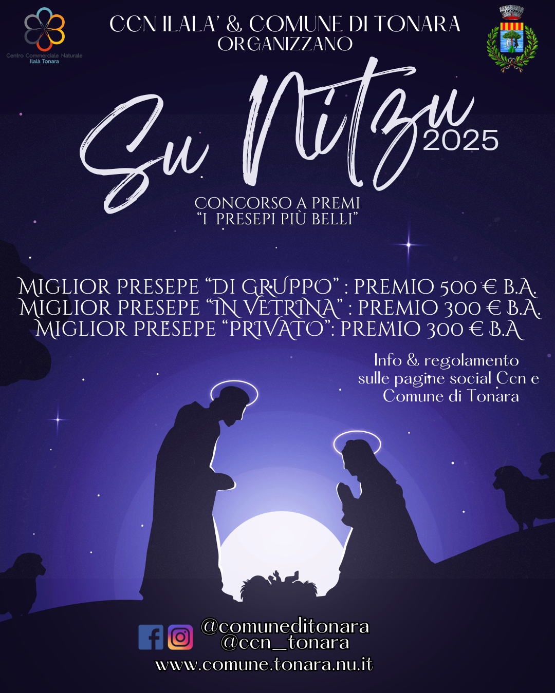 Il Concorso a Premi << “Su Nitzu” il Presepe più bello >> è organizzato dal Comune di Tonara e dal CCN Ilalà Tonara.